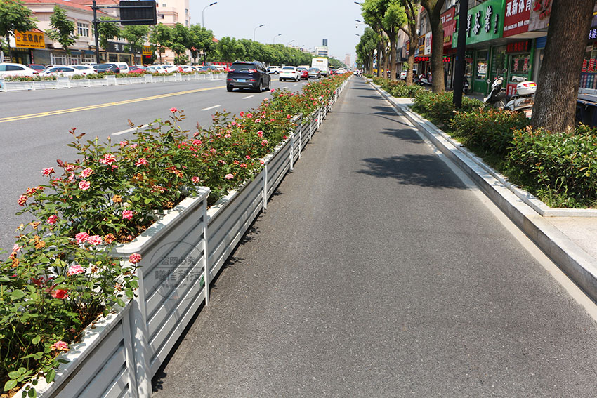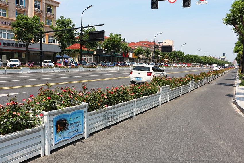 道路隔離花箱可分為中央隔離花箱、機(jī)非隔離花箱。這里就是機(jī)非隔離花箱。